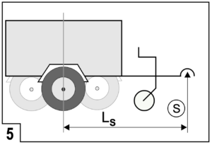 Als erstes messt ihr nun den Abstand Mitte Rad bis Mitte Kugelkupplung (Ls) in cm und notiert diesen Wert – bei mir: 453 cm.