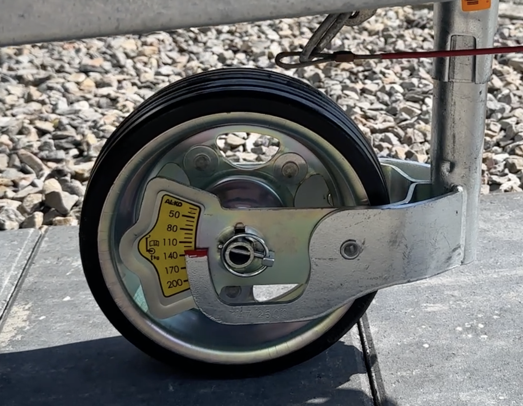 Kurbelt nun das Stützrad aus, bis es Bodenkontakt hat