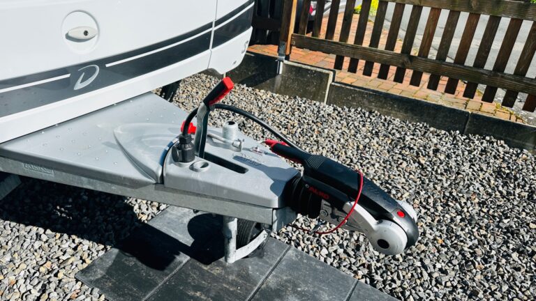 Sofern noch möglich: das Stützrad möglichst weit ausfahren, um den Bug des Wohnwagens möglichst hoch zu bekommen. In unserem Fall (durch den Bruch der Kurbel) war dies leider nicht mehr möglich… daher ging es für uns direkt weiter zu Schritt 3