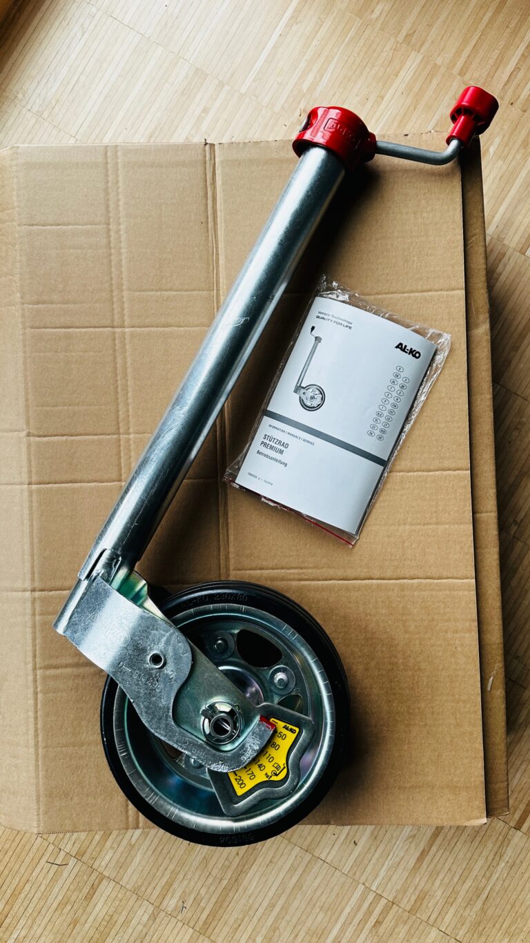 Nachdem uns leider beim Movern aus der Einfahrt zu Hause das Stützrad verkantete und dadurch irreparabel defekt ging, musste ein neues her… Relativ schnell und nach kurzer Marktrecherche fiel dann die Wahl auf das AL-KO Premium Deichselstützrad mit Wiegefunktion.