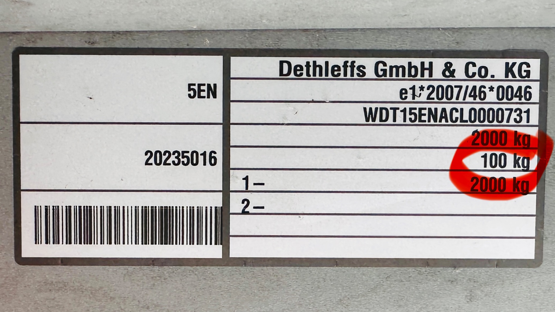 Der KLEINSTE Wert ist dann die maximale Stützlast (S) des Anhängers, bei mir also 100 kg